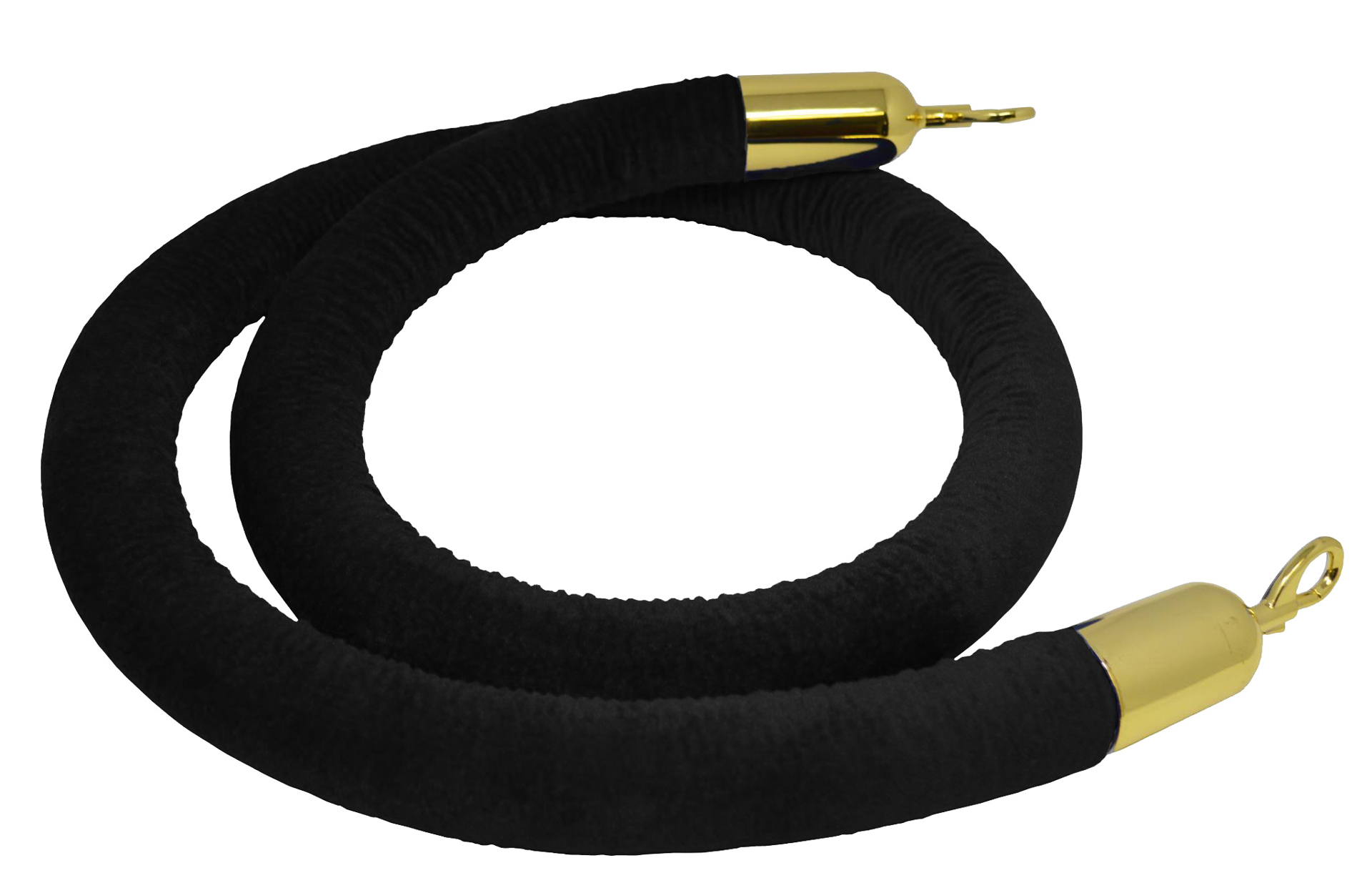 The plush black color and velour fabric (velvet-like material) this 6 feet long and 1.5 inch wide rope makes an excellent companion purchase to a set of classic brass or chrome stanchions. The rope ends come with two options, polished brass and polished steel to be matched with the corresponding stanchion.