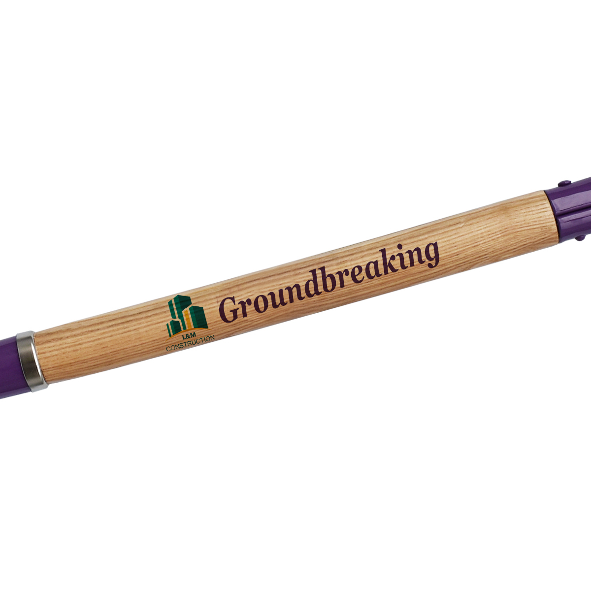 The ancient architectural ritual of consecrating the ground of a new structure to be built has managed to remain deeply embedded in our present, ground breaking ceremony tradition. The most important part of the event is the ceremonial groundbreaking shovel. This ceremonial shovel made from American Ash wood stem and stainless steel blade is presented in an alluring color purple that will catch the eye of every participant! The stainless steel purple accent on the D-Style ceremonial handle will have all eyes on it. Which brings us to customization; this elegant, sophisticated, and enchanting purple color shovel for ceremonial groundbreakings can be personalized at the handle, the stem, and the blade, with your company logo and commemorative date, or message appearing in one, or all. Standing at the traditional 42” height and 9.5” at the widest point of the blade, this elegantly crafted purple groundbreaking shovel is perfect for a ceremony conjuring the same good omens that were once bestowed upon timeless structures like the pyramids of Giza, the temple in Ankor Wat, the Taj Majal of India, Stonehenge of England, Gopeki Tepi of Turkey, and others such. Symbolizing the color of collective conscience, the color purple is associated with the pinnacle of unity and wisdom, values that a company, a business, or a brand can emphasize at the groundbreaking ceremony with this purple groundbreaking shovel featuring a logo customized blade, handle and stem.