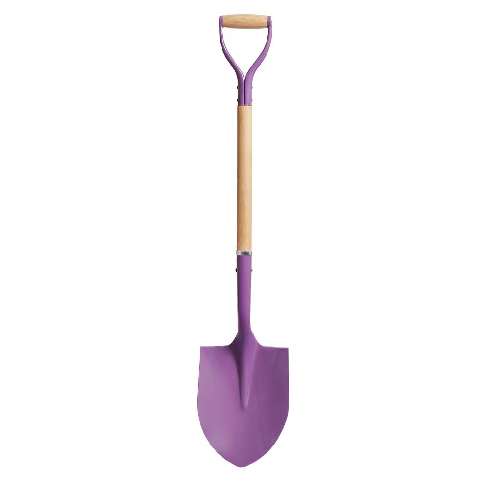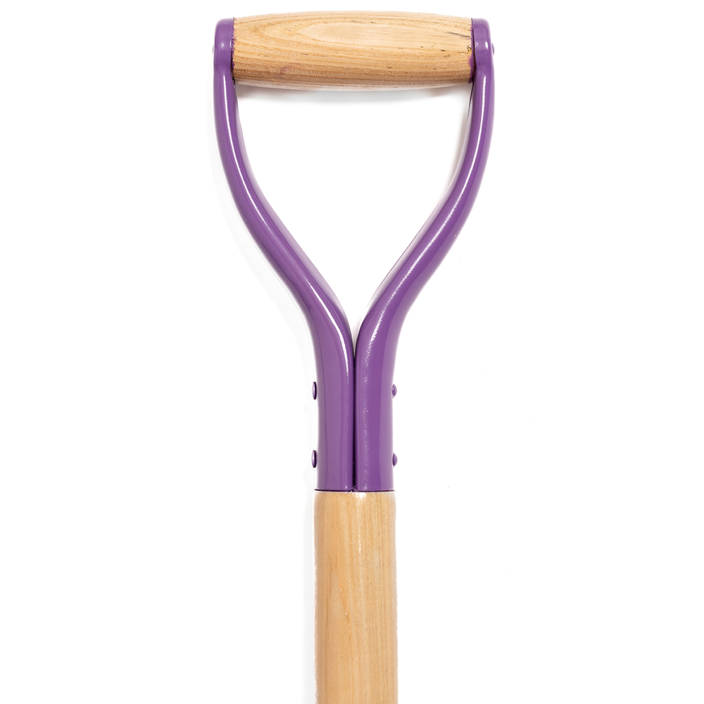 Ceremonial groundbreaking stainless steel shovel with Purple blade and wood stem constructed from American ash wood. The shovel is 42” high and 9.5” wide at the blade and has a matching purple D-Style handle with a wooden grip. The blade of this ceremonial shovel can be customized with vinyl – exceptions apply based on logo complexity. Please contact us if you are unsure if your logo is eligible. The shovel stem and grip can be customized with direct print and vinyl decals, and the shovel stem can also be customized with a mounted plate.