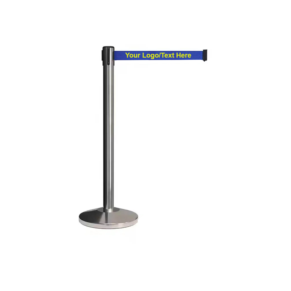 Elevate crowd control and space management with our Heavy Duty Retractable Dual Belt Deluxe Stanchion. Crafted with a sleek, polished stainless steel finish, this stanchion combines durability with a professional, modern aesthetic. Perfect for events, retail spaces, airports, or any high-traffic area, includes two retractable belts, each extending up to 11 feet. Belt color options include black, red, and blue. The post measures 39.37 in height, and 2.99 in diameter, its weight is 20.94 lbs. The base diameter is 14 in. Includes one single stanchion.