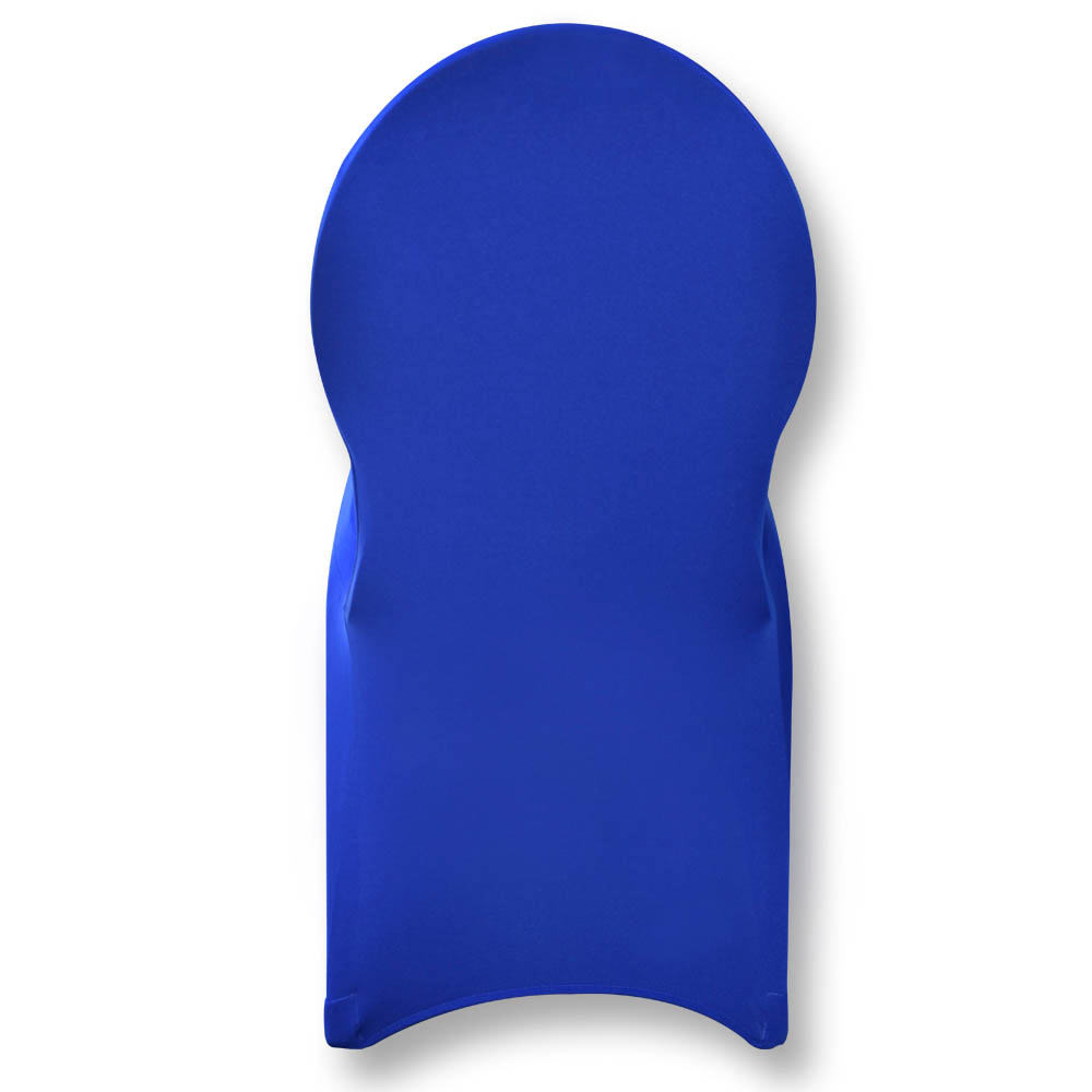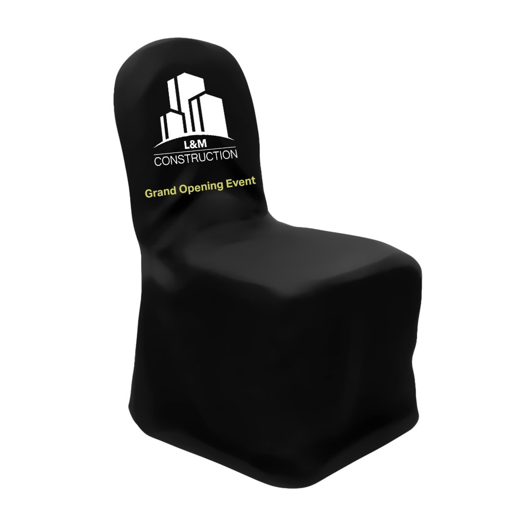 Customized spandex chair covers offer several benefits for events. They provide a sleek and polished look that adds sophistication to any venue decor. Our customizable spandex event chair covers fit snuggly and have a smooth texture. Instantly transform ordinary chairs into elegant sitting rooms. You can customize the spandex event chair covers with your own brand name, logo, or company name. The covers come in royal blue, white, and black, allowing event organizers to match them with the event's theme or branding, enhancing the overall aesthetic appeal. The customizable maximum area is 10 inches wide by 12 inches high.