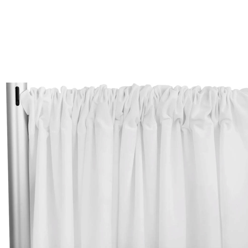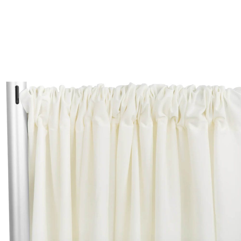 Enhance your event's ambiance with our Poly Premier Fire Retardant Drape/Backdrop, measuring 8 feet in height and 60 inches in width. Crafted from high-quality Poly Premier fabric, this drape offers a professional matte finish with the look and feel of linen. Available in colors: black, red, navy blue, white, and ivory. Material Care: Machine washable cold & low heat. Opacity: Approximately 60% to 70%. Edge: Clean, cut unfinished edge.