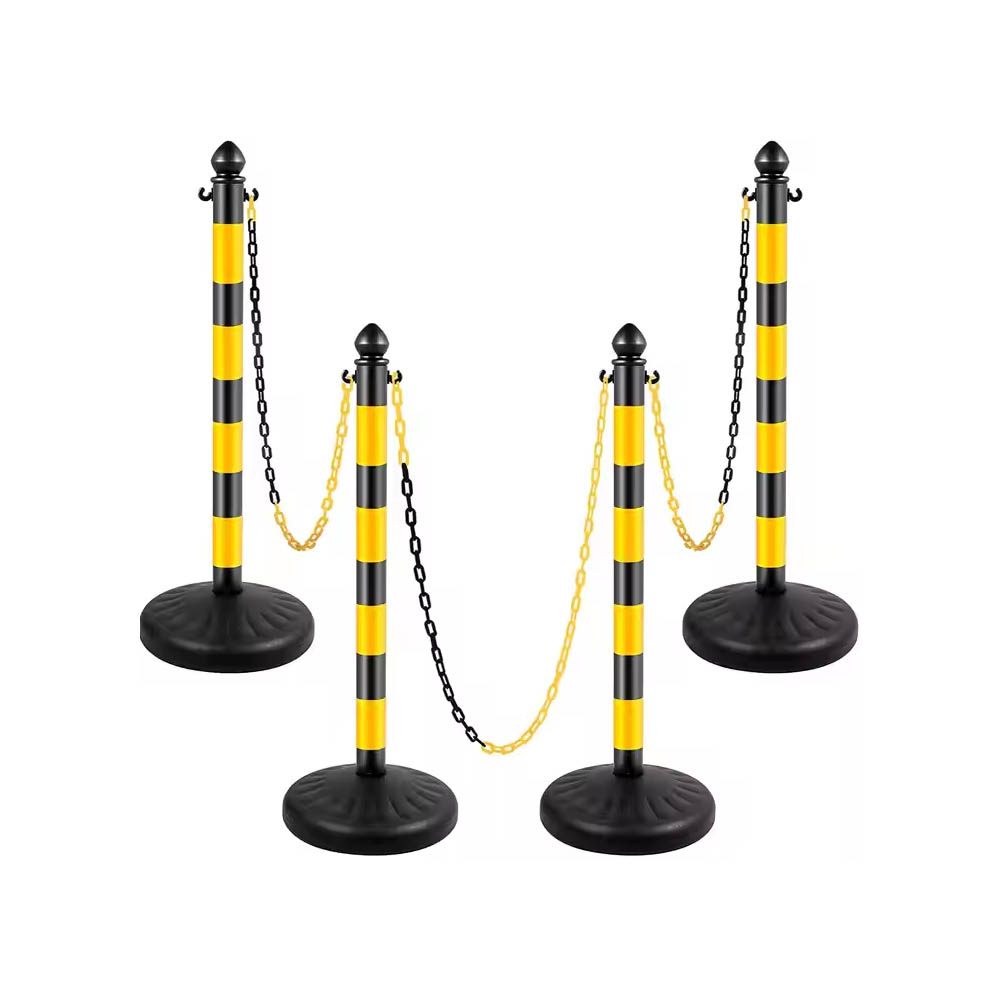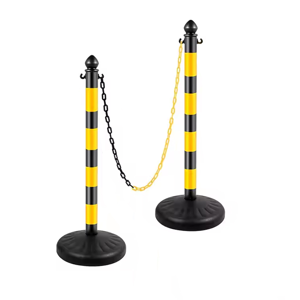 2 Posts and 16 Feet Chain The Economy Two Plastic Stanchion & Chain Kit is the perfect solution for light to medium-duty crowd control and space management in both indoor and outdoor settings. Designed for versatility and durability, this kit is ideal for a wide range of applications. Includes two plastic stanchions, each equipped with two "C" hooks on top for easy chain connection, and a matching a 16 feet chain in your choice of color (black/yellow, black, white, red/white, or yellow). Each lightweight plastic stanchion features a fillable base that can be weighted with water, sand, or gravel (up to 4 lbs of sand or 104 oz of water) for enhanced stability in any environment.