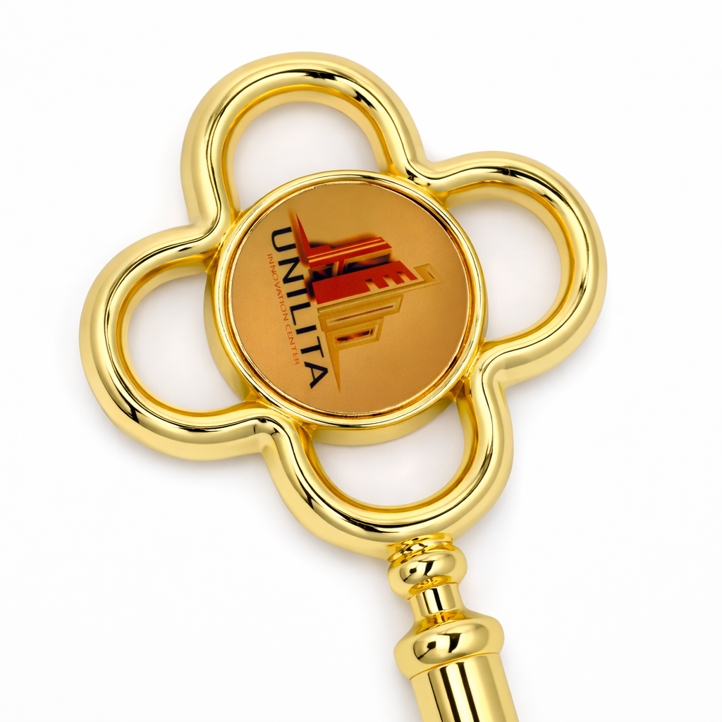Perfect for honoring community leaders, retiring officials, corporate milestones, or ceremonial events, this grand key makes a striking statement of appreciation. Crafted from high-quality metal with polished gold plating for a luxurious look. These Keys feature 24 inches (2 feet) of gleaming golden finish, designed to command attention in presentations or displays. Customize it with the recipient’s name, date, organization logo, or a special message. Three styles are offered: 24-inch with an 8-inch cut-out head, 24-inch with an 8-inch solid head, and 24-inch with a 10-inch solid head.