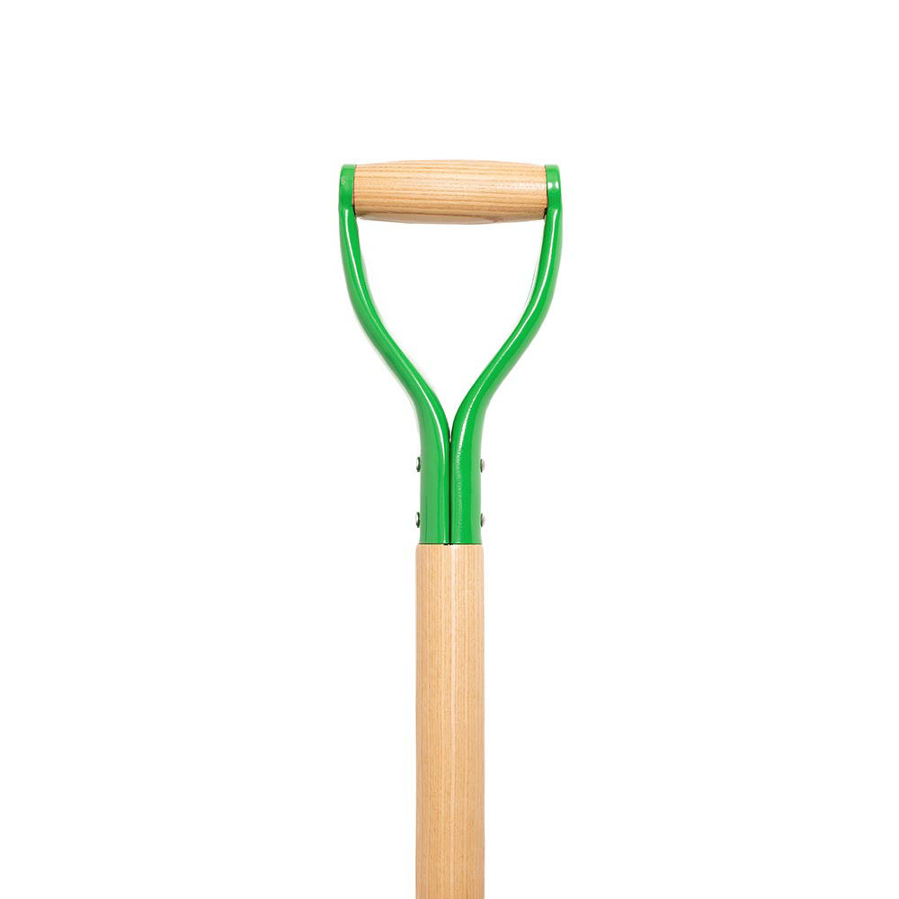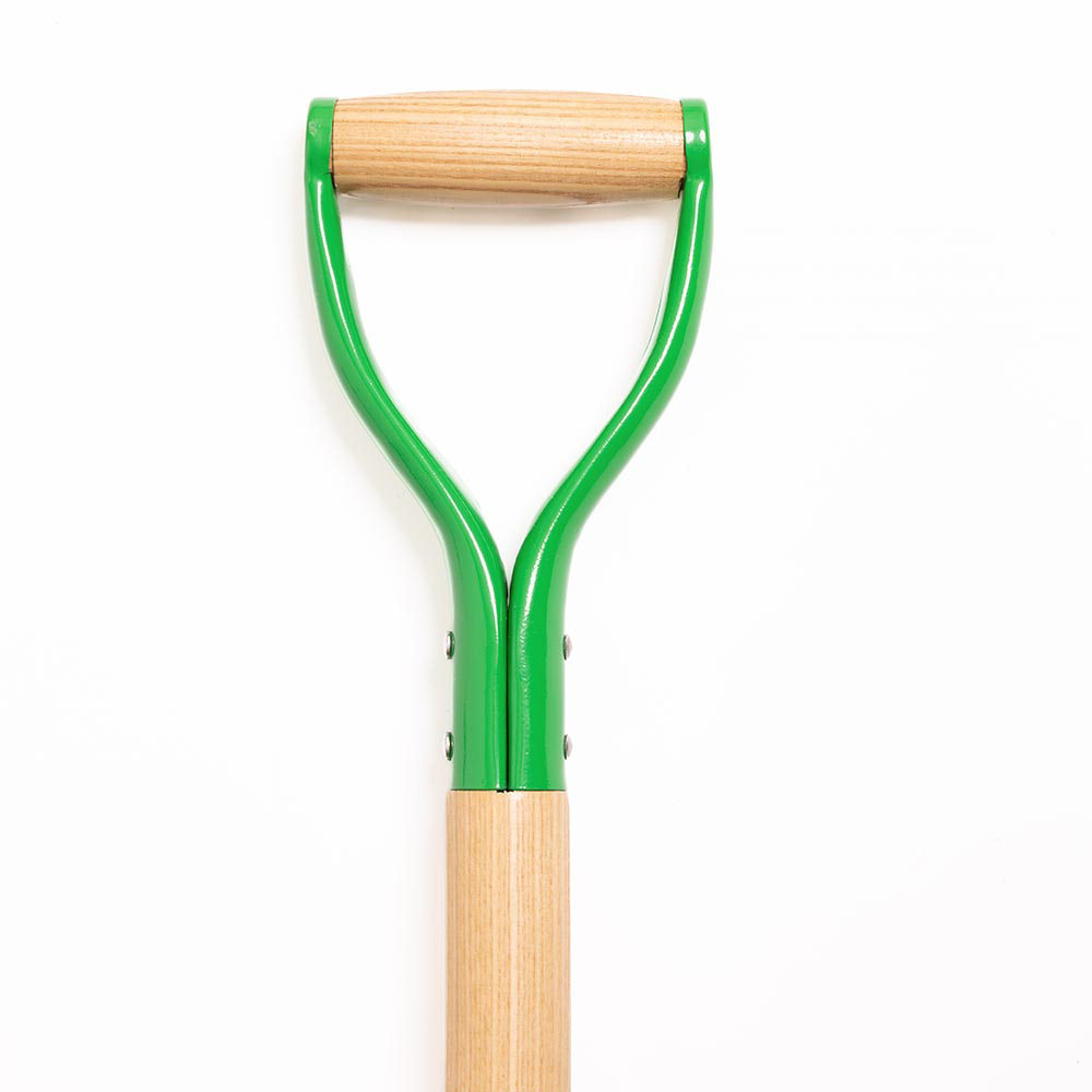Green colored Steel head ceremonial Groundbreaking shovel with black metal D-style handle on wood grip. 42" high and 9.5" wide shovel head. Grip and stem are American ash wood. Shovel head can be customized with vinyl, exceptions apply based on logo complexity, please contact us if you are unsure if your logo is eligible. Shovel stem and grip can be customized with direct print and vinyl decals, and the shovel stem can also be customized with a mounted plate. Optional mounted plate of matching Green can be personalized for the stem.