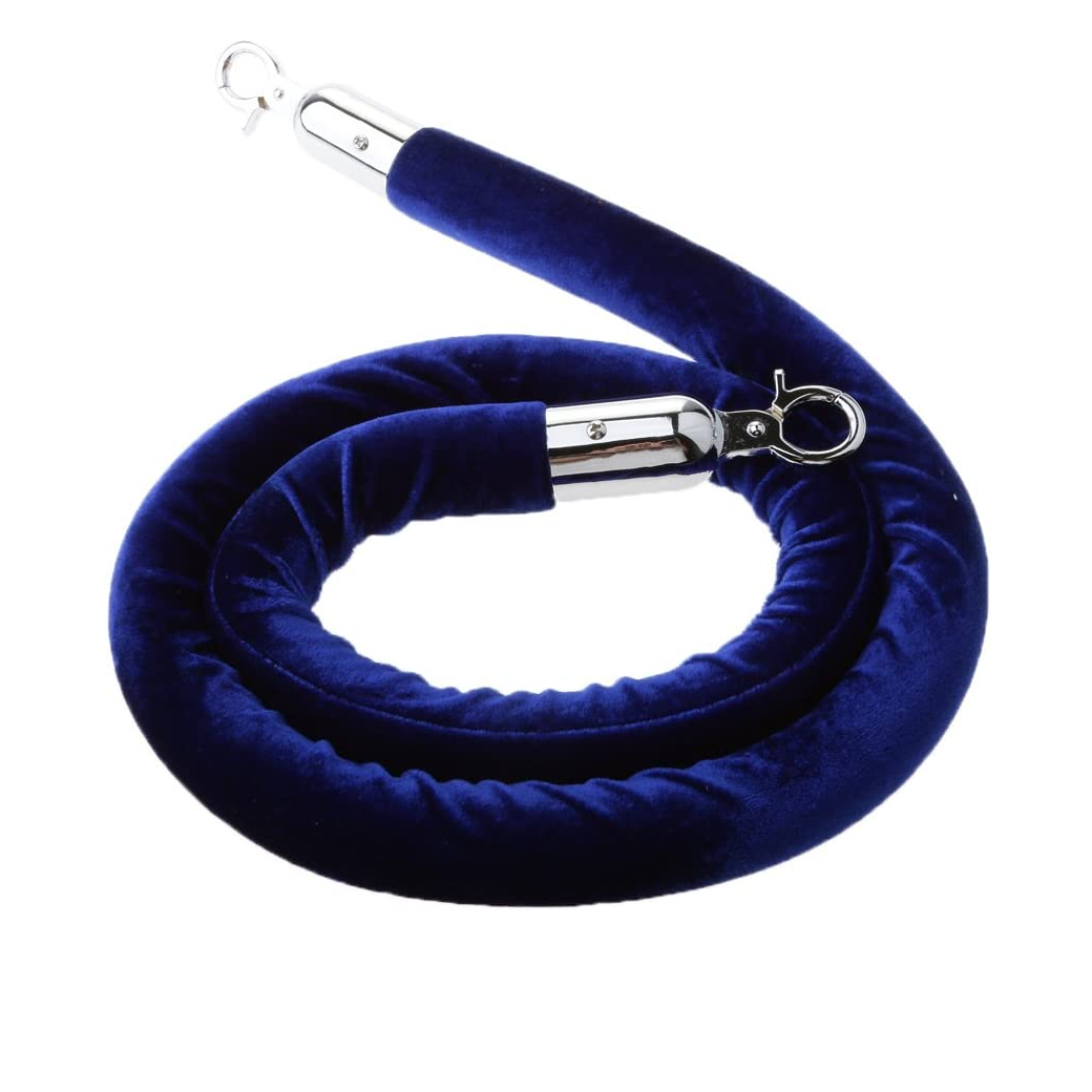 The plush royal blue color and velour fabric (velvet-like material) this 6 feet long and 1.5 inch wide rope makes an excellent companion purchase to a set of classic brass or chrome stanchions. The rope ends come with two options, polished brass and polished steel to be matched with the corresponding stanchion.