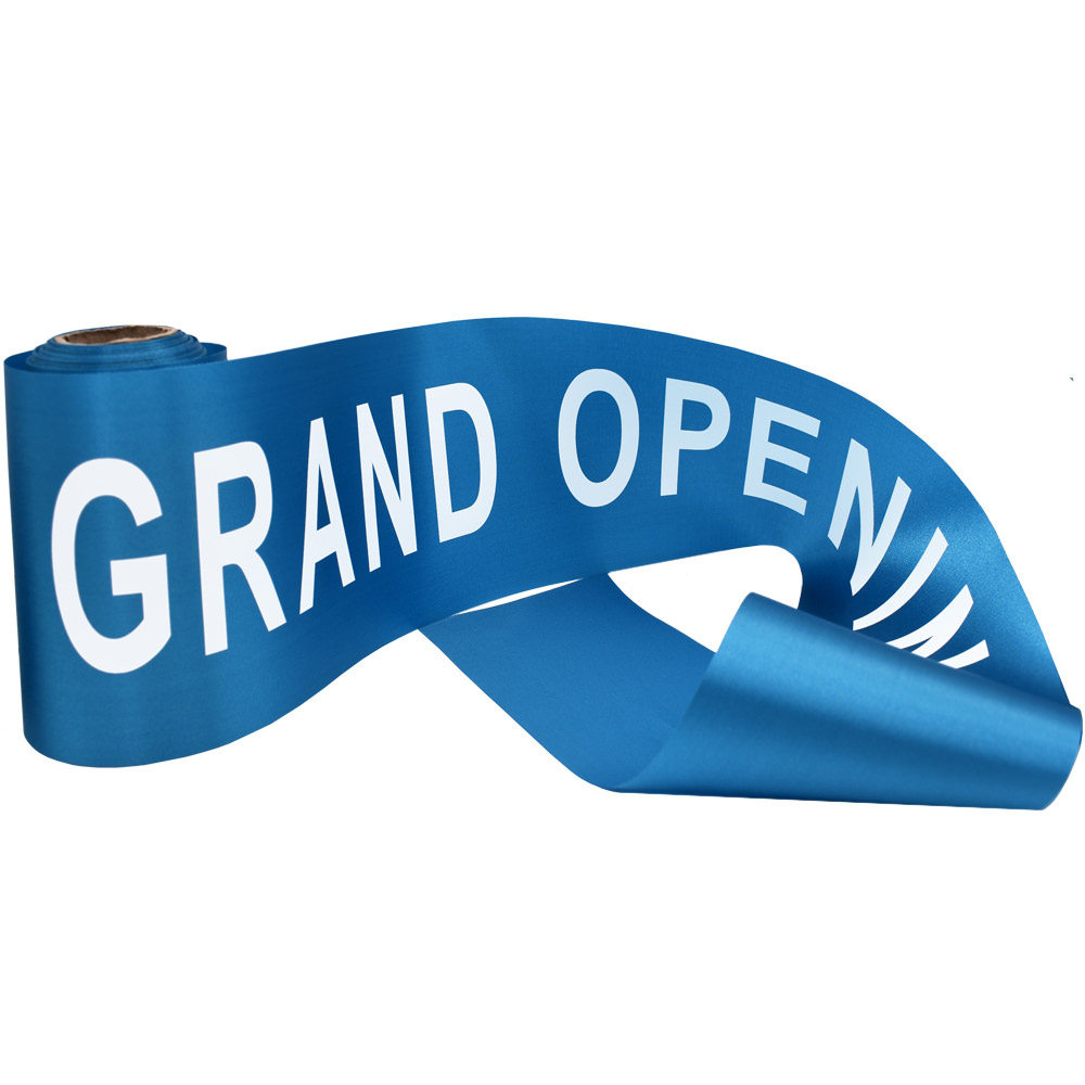 Make an eye-catching impression at a Grand Opening with Pre-printed grand opening ribbons from CeremonialSupplies.com, that come in 4” and 6” widths, and up to 25 yards, all ready to go!