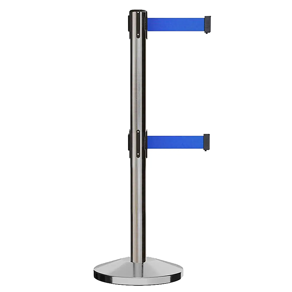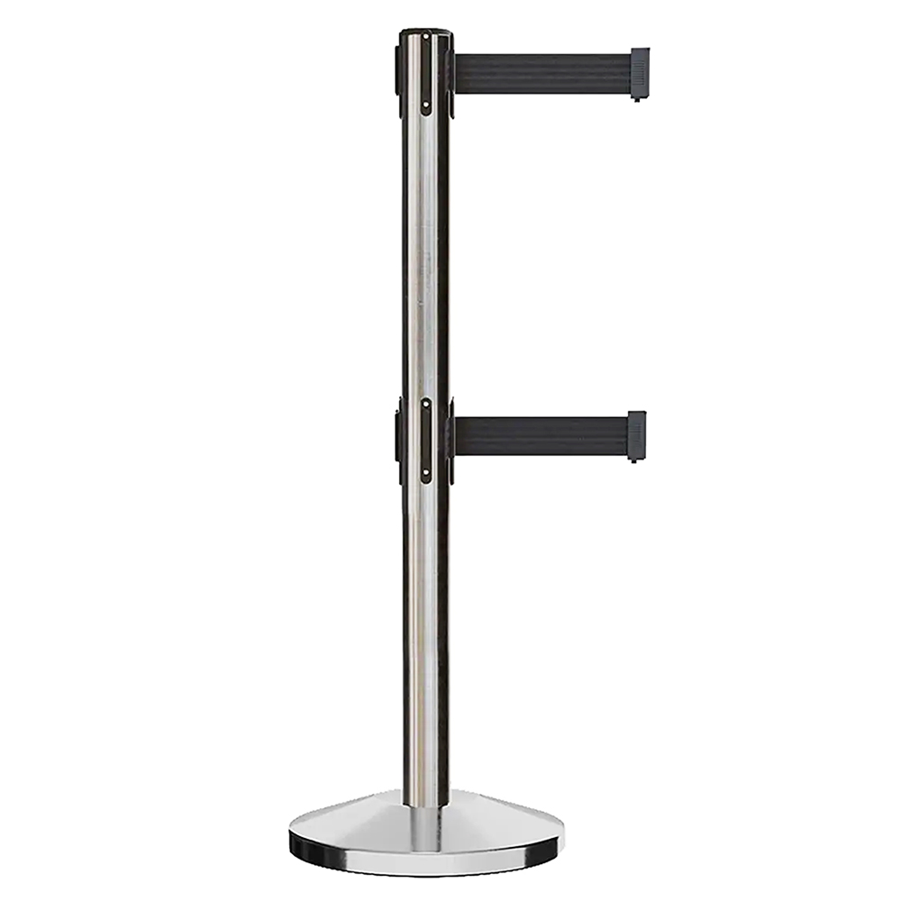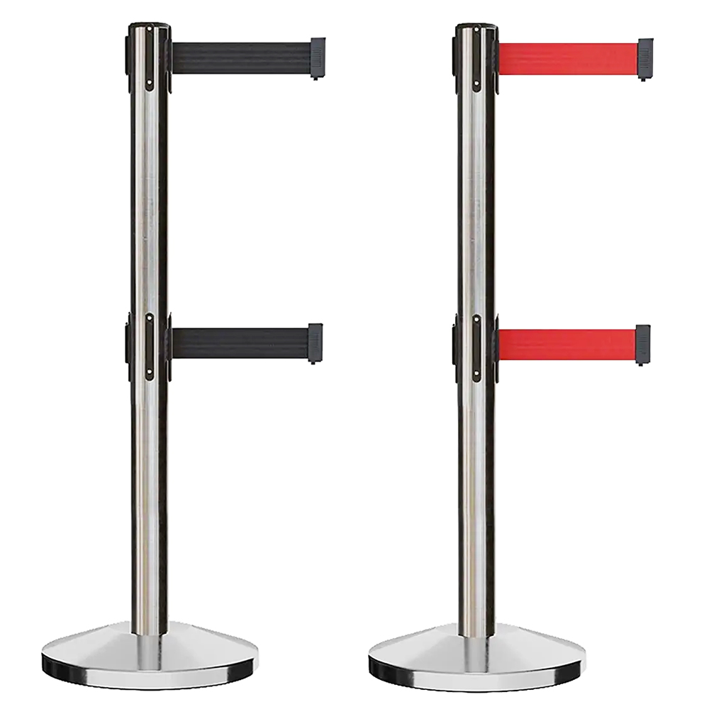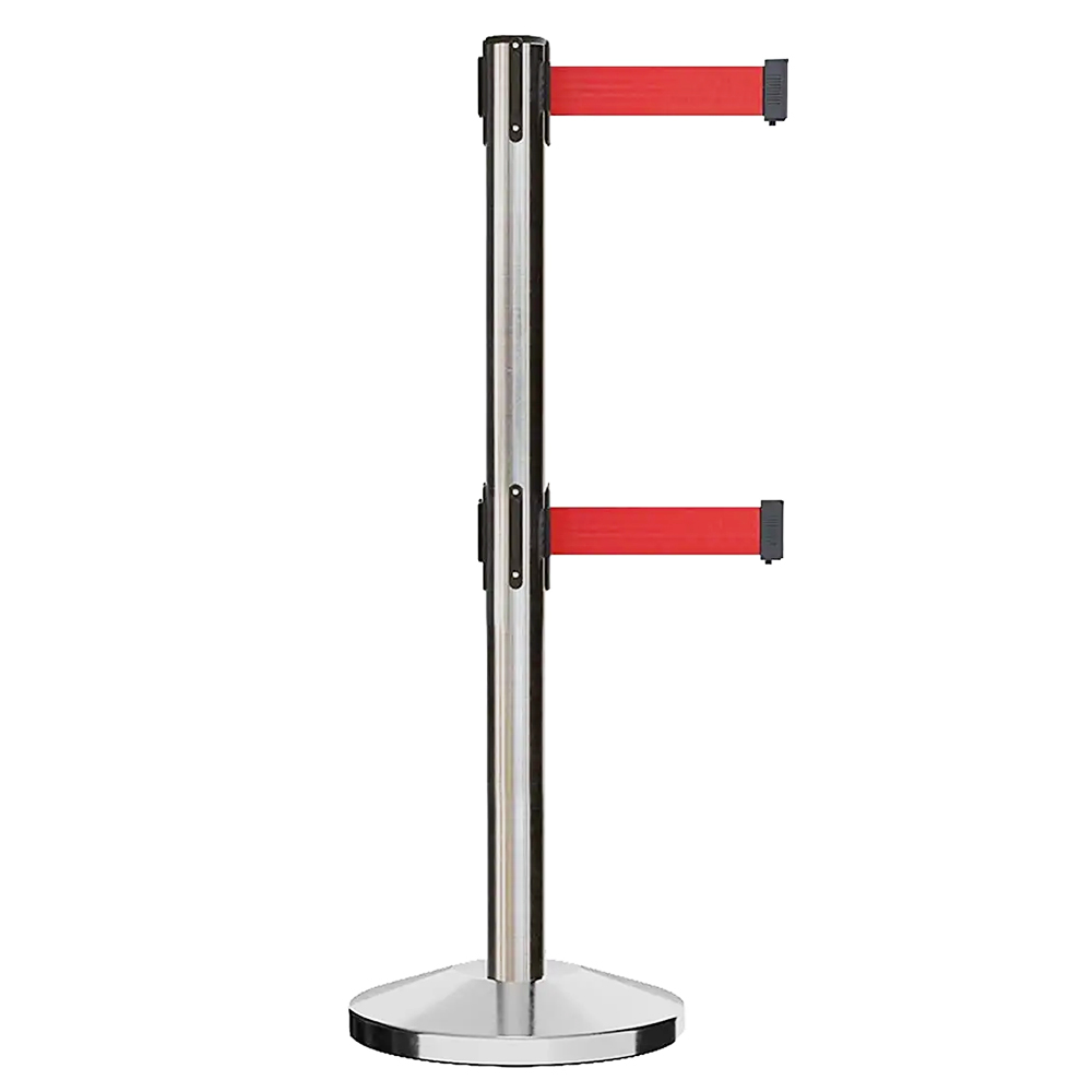 Whether you're managing queues, creating designated areas, or enhancing security, this Retractable Dual Belt Barrier Stanchion offers a reliable and stylish solution. Add a touch of professionalism to your space while maintaining order and safety.Key Features:Dual Belt System: Includes two retractable belts, each extending up to 11 feet, providing ample coverage and flexibility.Polished Stainless Steel Construction: Built to last with a premium, corrosion-resistant finish that maintains its shine over time.Sturdy Base: Features a weighted base for stability and safety.Easy to Use: Smooth retraction mechanism ensures hassle-free operation and compact storage.