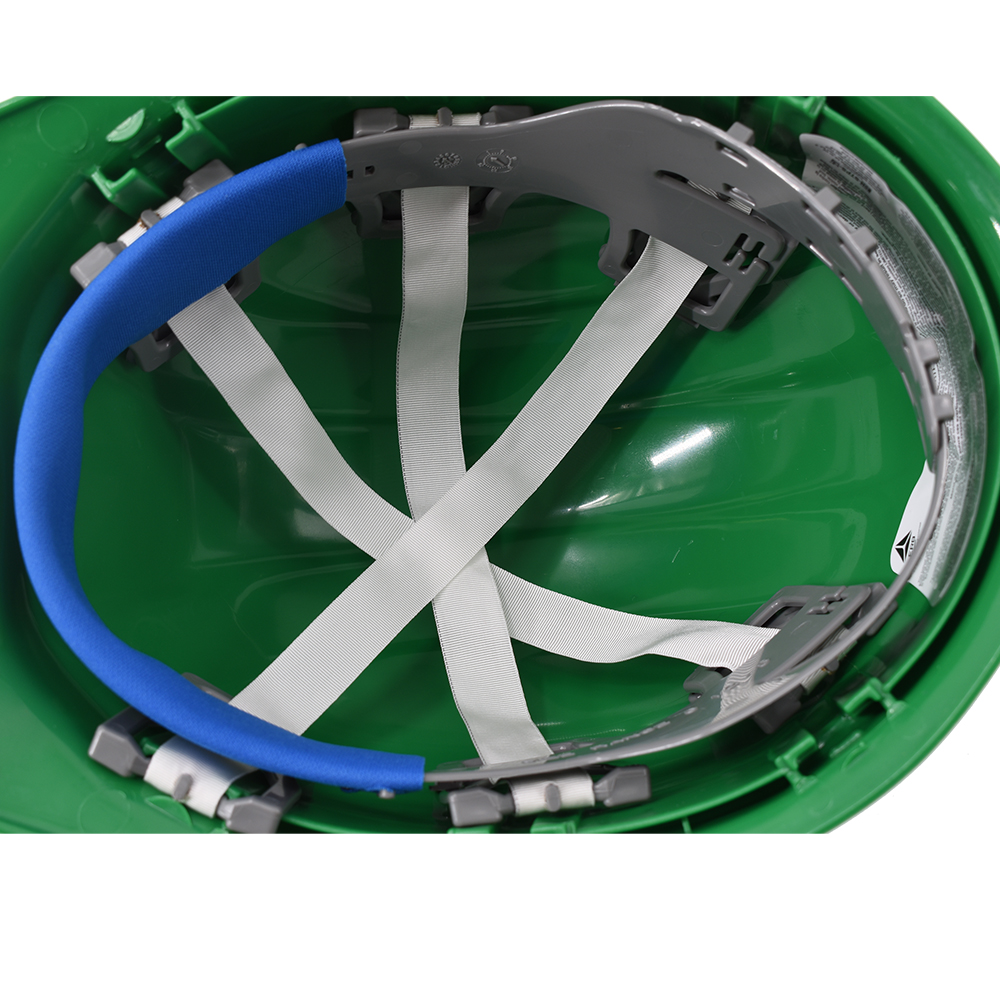 Stay protected on the job with this durable green hard hat, molded from high-density polyethylene for superior impact resistance. Featuring a 6-point nylon suspension and Quick-Slide sizing to fit head sizes 6 1/2 to 8. Made in the USA and meets ANSI Z89.1 Type 1, Class C, E & G standards.