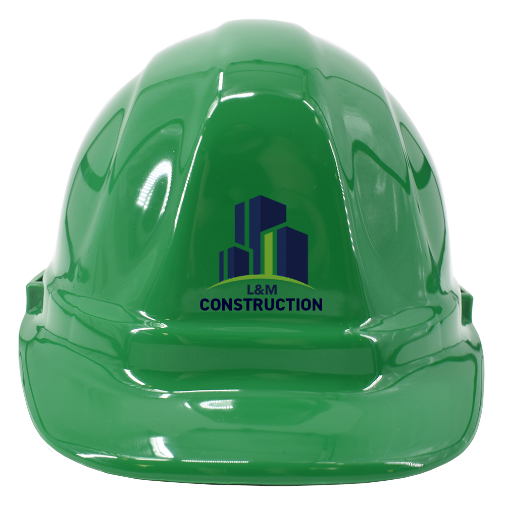 Make a bold statement at your next groundbreaking ceremony with this Customizable Green Safety Hard Hat — the perfect blend of style, safety, and branding. Molded from high-density polyethylene, this hard hat not only offers reliable protection but also serves as a polished, professional accessory for ceremonial events.Proudly made in the USA, this hard hat also offers full customization options to showcase your brand or company identity. Add your logo, text, or graphics to the front and sides using either vinyl or direct print for a sleek, professional look. It’s a perfect solution for teams that value both safety and style on your groundbreaking event.