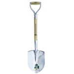 Silver Color Steel Shovel Head blade is 9.5" wide with wooden stem constructed from American ash wood for total height of 42". Please note the very top of the shovel head has the word "Tempered" inscribed. Painted metal D-style handle on wooden grip. Shovel head can be customized with vinyl, exceptions apply based on logo complexity, please contact us if you are unsure if your logo is eligible. Shovel stem and grip can be customized with direct print and vinyl decals, and the shovel stem can also be customized with a mounted plate.