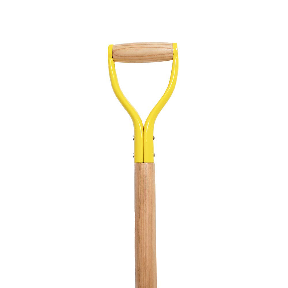 Yellow colored Steel blade ceremonial shovel is 42" in length with a 9.5" across the blade. Handle is D-style painted metal with wooden grip, and stem is constructed from American ash wood. Shovel head can be customized with vinyl, exceptions apply based on logo complexity, please contact us if you are unsure if your logo is eligible. Shovel stem and grip can be customized with direct print and vinyl decals, and the shovel stem can also be customized with a mounted plate.